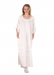 Платье прямого силуэта, в пол, из белой полульняной ткани. Комфортное, не стесняющее движений. В боковых швах карманы и разрезы. Рукав регулируется по высоте.