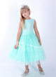 Платье для девочки цвета мяты для торжественного случая, очень нежное, как у принцессы. Лиф платья с пайетками спереди, на спинке шнуровка для регулирования объема. Юбка многослойная, верхний слой юбки из мягкой сетки посажен на атлас. Нижняя юбка усилена жесткой сеткой, которая сильно насборена и хорошо держит форму. Талия декорирована сеткой-поясом в два оборота, завязывается в легкий бант.