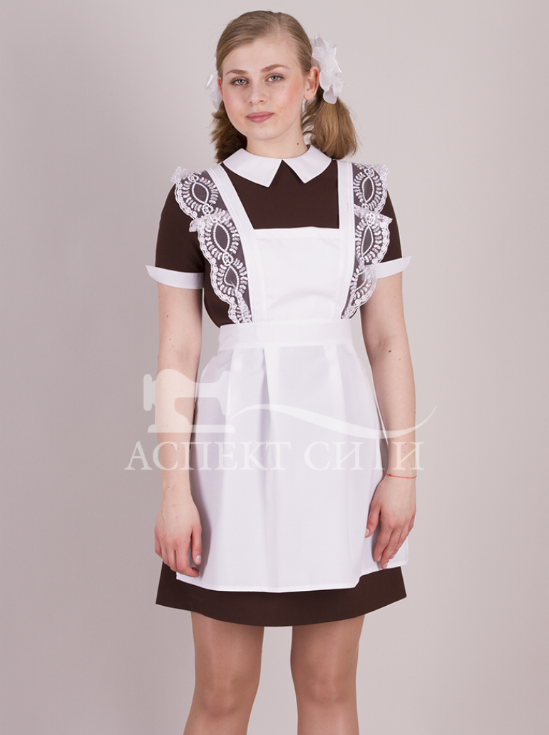 Фартук школьный белый с крылышками из широкого кружева с вышивкой на сетке. На груди кармашек. Станет настоящим украшением к любому советскому платью. Пояс фартука завязывается сзади, ткань габардин.
