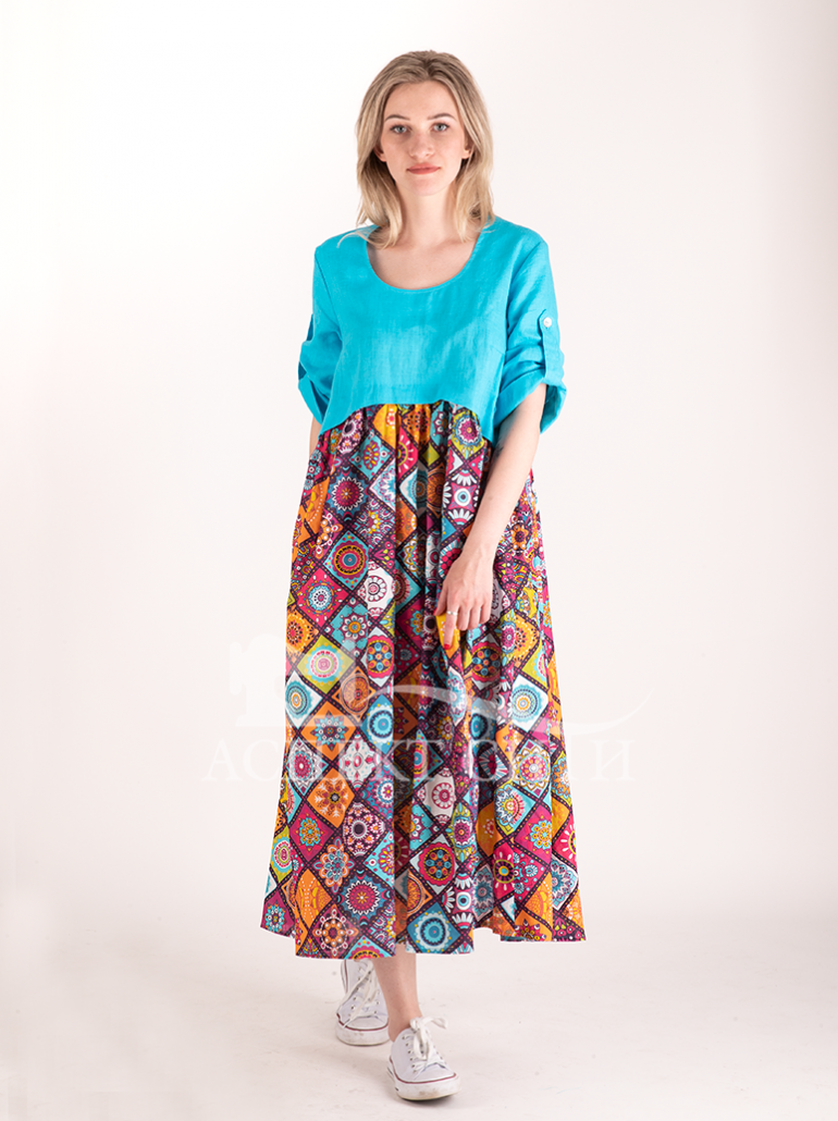 Платье "Мозаика" (лен 100%, хлопок 100%)