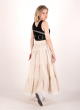 Юбка многоярусная из неотбеленной ткани, пояс на резинке, по нижнему срезу вязаное льняное кружево. Ткань полулен, 50% льна, 50% хлопка.