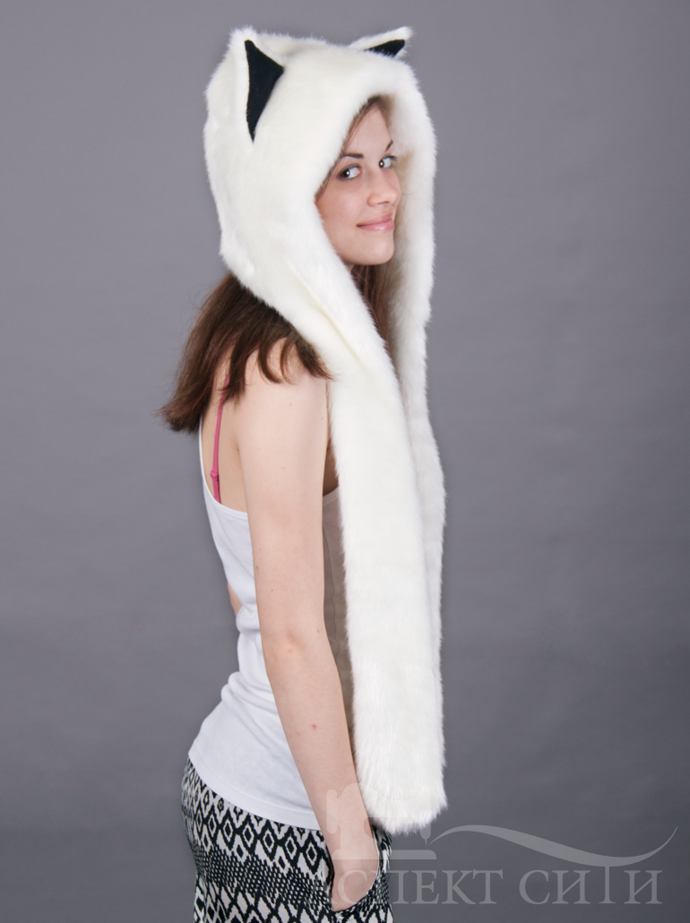 Зверошапка. Волкошапка. Шапка с ушками. Белая норка № 2