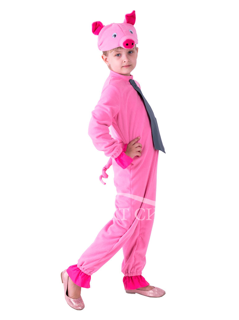 Веселый костюм Поросенка выполнен из качественного флиса. В комплект костюма входит комбинезон с молнией спереди, шапочка универсального размера с хлопковой подкладкой и серый галстук. Костюм универсальный подойдет как мальчикам, так и девочкам. Не маломерит.