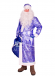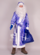 Костюм Деда Мороза № 3, парча синяя с серебром, отделка флисом (борода, шуба, кушак, шапка, варежки)