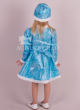Костюм Снегурочки для самых маленьких внучек сказочного Дедушки из двух предметов- шубки и шапочки. Шубка на подкладке, расклешена книзу, отделана коротковорсным мехом, застегивается на потайные пуговицы. Шапочка также с меховой отделкой.