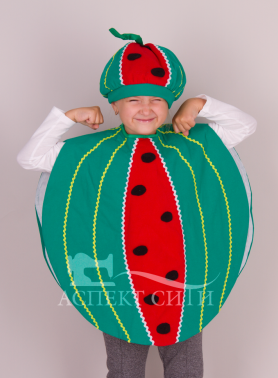 Шапочка светло-зеленого Арбуза для детей любого возраста. Выполнена из хлопковой ткани, наполнитель - синтепон.