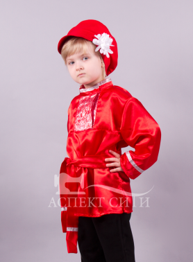 Детский русский народный костюм "Марья" состоит из блузы, сарафана и кокошника. Сарафан выполнен из хлопка, декорирован красной атласной тканью. Блуза - 100% хлопок с красными атласными вставками.
