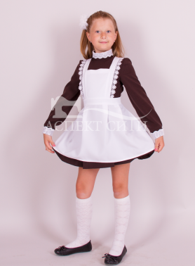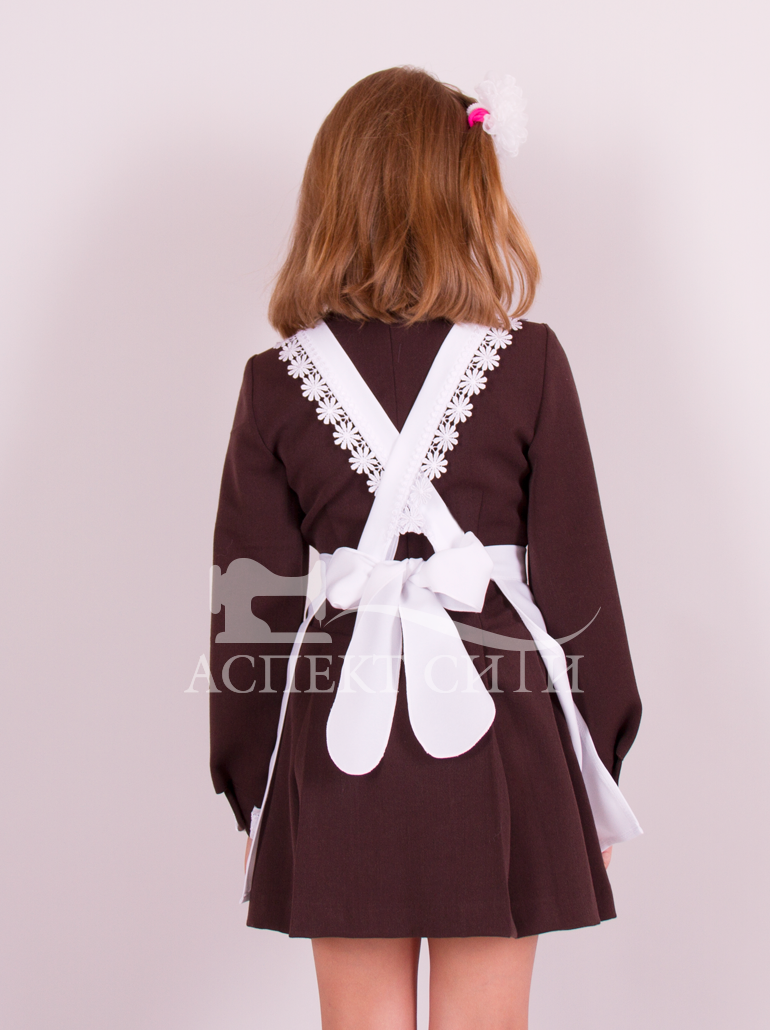 Фартук белый с кружевом на крылышках, завязывается сзади, лямки регулируются. В ростах до 146-го, включительно, имеется нагрудный карман. Ткань - габардин.