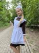 Фартук школьный белый, крылышки и нижний срез полотнища фартука обработаны кружевом, пояс завязывается сзади, ткань - габардин. В ростах от 116 до 146 у фартука нагрудный карман.