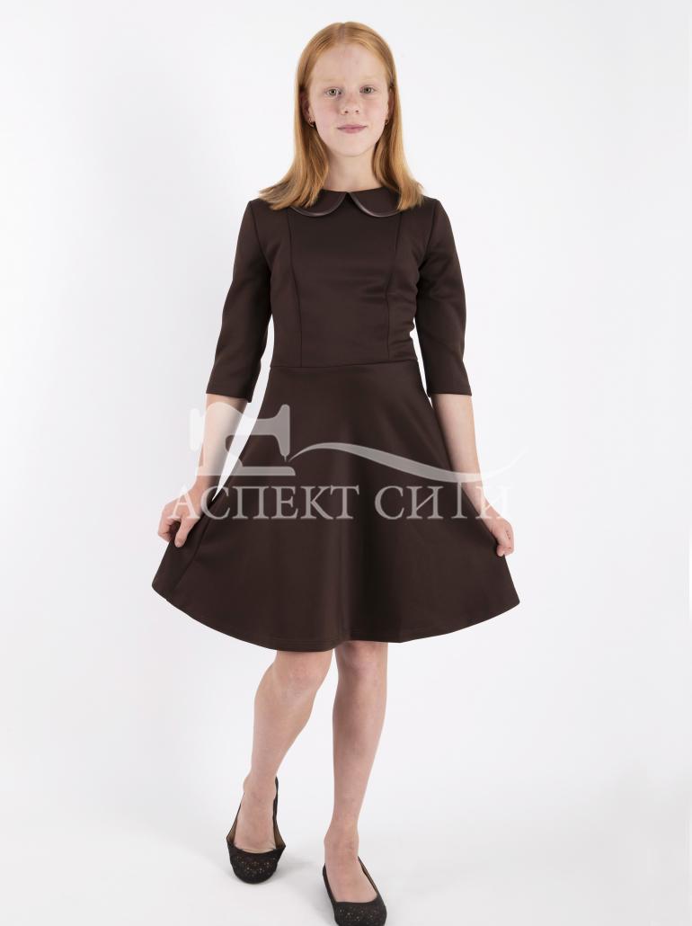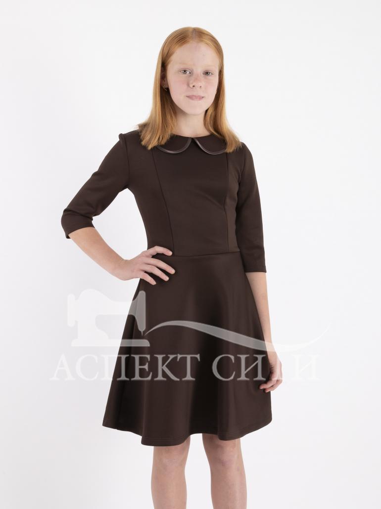 Платье и пришивной белый воротник, 4-255к, коричневое