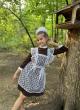 Фартук для школы гипюровый, классический, крылышки с воланом. Пояс продевается в лямочки, которые перекрещиваются на спинке и перемещаются по поясу в боковые стороны. Фартук без пуговиц. Пояс завязывается по центру спинки. В росте 164-170 подходит для девочек от 40-го до 54-го размеров включительно. Ткань изделия - нежнейшее кружевное полотно.