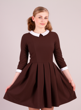 Платье школьное, 4-320-1к (коричневое платье и комплект пристегивающихся манжет и воротника)
